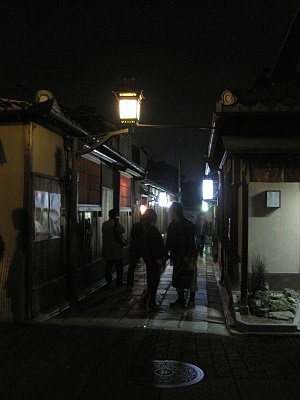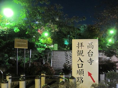 ▼ 19:00由此往上就是《高台寺》的停車場,那時心裡想著人不多,怎看都不像是賞夜楓的勝地,原來是一般人很少由這兒走,一到門口才知道排隊買票¥600入場的隊伍大概有100公尺長了,還能怎麼樣,就跟著排啦!~