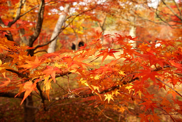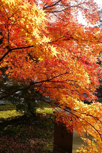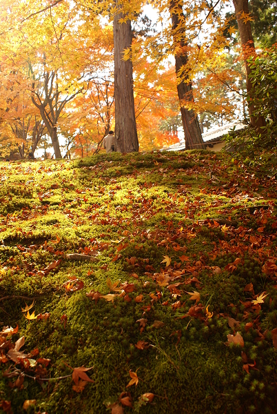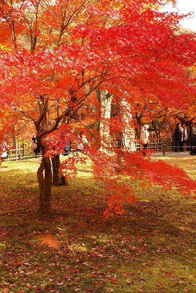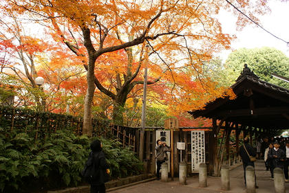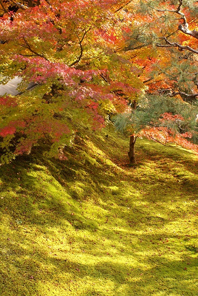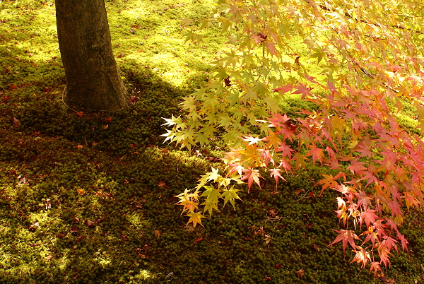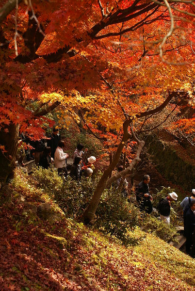 依這幾天的觀察,來京都賞楓也不用緊盯紅葉情報站來調整行程,氣候總是無法控制,是晴是雨,外頭交由老天安排,而裡頭的心情,必須自己決定。到過的每一個紅葉名所,不管當時已經多麼殷紅,總還是能看到才開始轉大人的楓綠,即使是在同一棵樹,同一株分枝中,仍舊會因接受陽光照射的時間、角度所造成的溫差,而有葉子顏色的層次。
