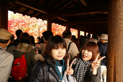 原本東福寺是此次規劃京都紅葉狩り的最後一站,因為下午的興聖寺太遠改為平等院,結果如同《高台寺》一文所提到的,晚上臨時又衝了清水寺,所以清水寺才算是真正紅葉狩り的最後一站。正午12:00離開了東福寺,一樣跟著人潮走回<東福寺駅>,到宇治吃飯去~