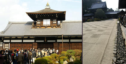 ▼ 院裡的《常乐庵》有著大排長龍的祈福人潮,兩旁則是有枯山水的庭院,此時頭頂日照很強,枯山水拍起來一點立體感都沒有。