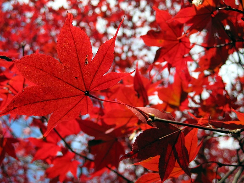 ▼ 這一天時陰時晴的,沒太陽襯托的楓葉雖美,但陽光透射時的紅葉更加耀眼,即使想要用相機抓住心中感動的剎那,可嘆本人的拍照技術就是這樣而已了,幸好多拍個幾張總有成功的。