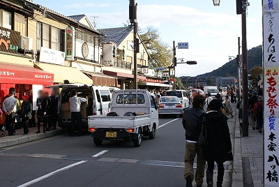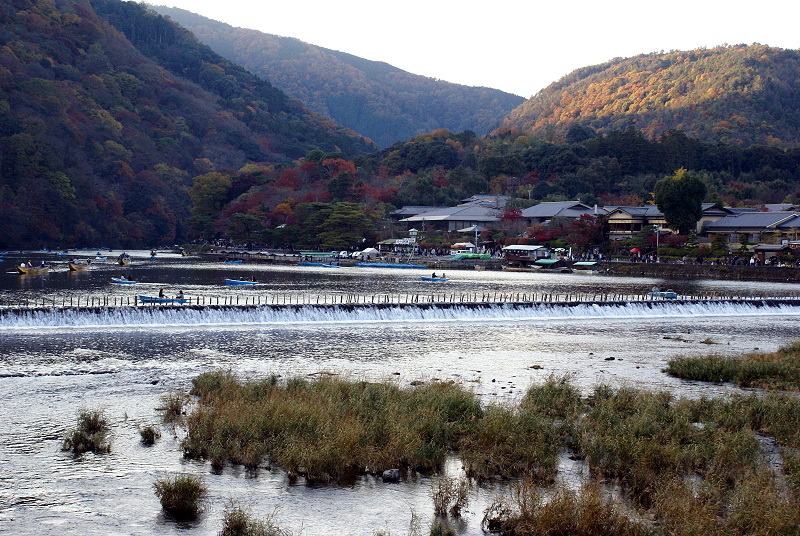 ▼ 在《渡月橋》頭吃了一支抹茶霜淇淋後,到滿滿都是人的橋上來回走了一遭,這是第二次站上《渡月橋》,上回是數年前沒啥人的六月份,這次選在鬧烘烘的11月,對於兩旁高聳的山頭,我還是沒啥感覺,也許是沒陽光加持,讓滿山的楓紅也黯淡無光。