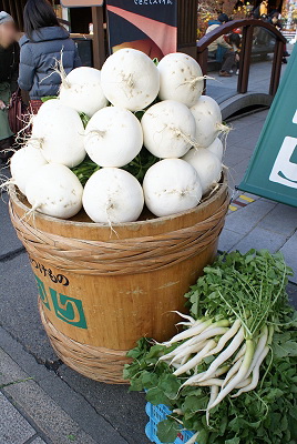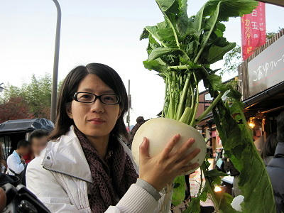 ▼ 往車站的路上看這堆菜頭實在很壯觀,拿起來拍一下,老闆應該不會在意吧?
