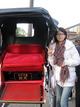 ▼ 唉唷!?空車耶!趁車夫不在趕緊來拍一張,拍完才發現,他老大就坐在車後面...