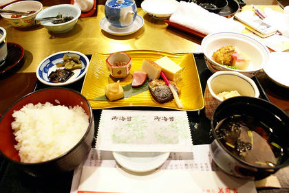 侍應生問我們要"ごはん"還是另一種,只知道"ごはん"是飯,大牛猜另一種是粥,一上來果然就是粥,不過那是20分鐘之後的事情了,準備時間還真久啊!果然這是讓老人們慢慢品嚐的地方,不是我們年輕人該來的...